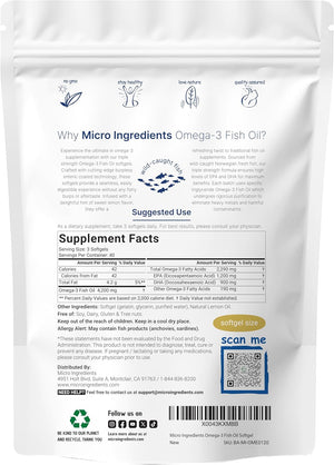 Micro Ingredients ofrece cápsulas blandas de aceite de pescado omega-3 de triple fuerza de 4,200 mg. Infundido con un dulce sabor a limón y fabricado con tecnología de recubrimiento entérico sin eructos. Mantiene altos niveles de EPA DHA de pescado fresco noruego capturado en la naturaleza.