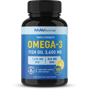 FISH OIL OMEGA 3 3,600 MG CON EPA 1296 MG Y DHA 864 MG 180 CAPSULAS BLANDAS MAV NUTRITION