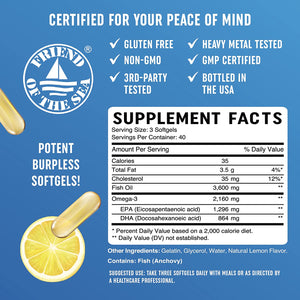 3,600 MG OMEGA 3 1,296 MG EPA 864 MG DHA |