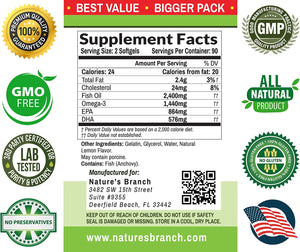 FISH OIL 2400 MG OMEGA 3 1440 MG CON EPA 864 MG Y DHA 576 MG 180 CAPSULAS BLANDAS NATURES BRANCH