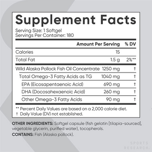 FISH OIL OMEGA 3 1,250 MG CON EPA 690 MG Y DHA 260 MG 180 CAPSULAS BLANDAS SPORTS RESEARCH