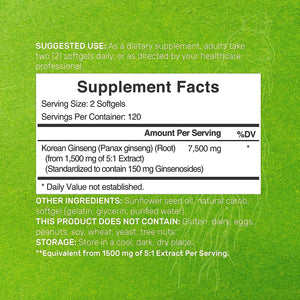 GINSENG PANAX ROJO COREANO 7,500 MG 240 CAPSULAS BLANDAS SIN GMO GINSENG KOREAN PANAX DEAL