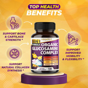 El Glucosamina Complex de Vegatot, con 11,209 mg por porción en 150 cápsulas veganas, combina glucosamina, colágeno, condroitina, MSM y ácido hialurónico para un completo soporte de la salud articular y del tejido conectivo. Este suplemento es ideal para quienes buscan una opción vegana y sin ingredientes de origen animal.