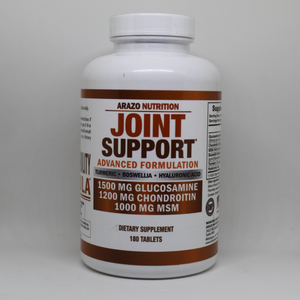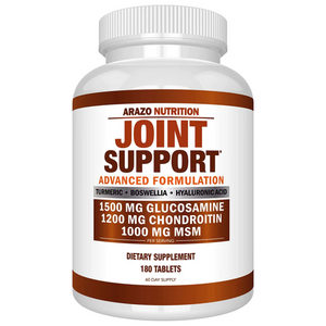 Joint Support de Arazo Nutrition contiene una poderosa mezcla de glucosamina, Chrondroitin y MSM que ha demostrado que reduce dolores, dolores e inflamación en las articulaciones.