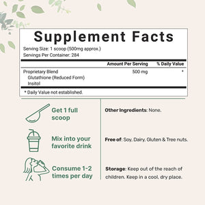 Suplemento de glutatión, polvo reducido de glutatión puro con inositol, 142 gramos