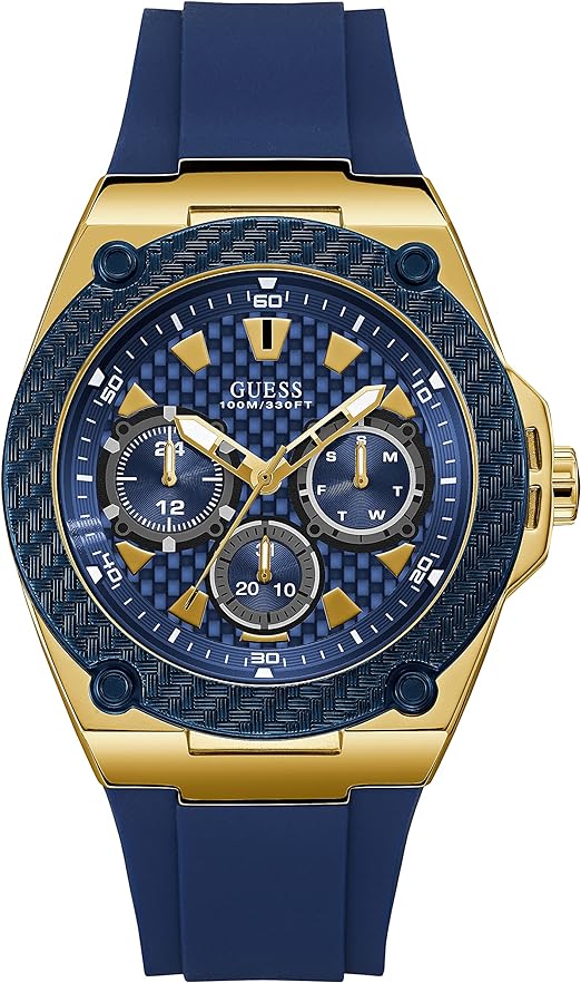 Guess Men Stainless Steel Quartz Watch with Silicone Strap