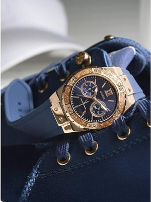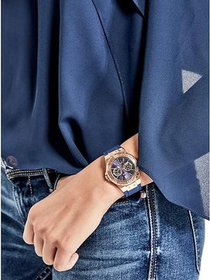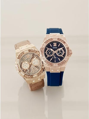 GUESS Women's Stainless Steel-Stain Resistant Silicone Watch with Day - Date Functions