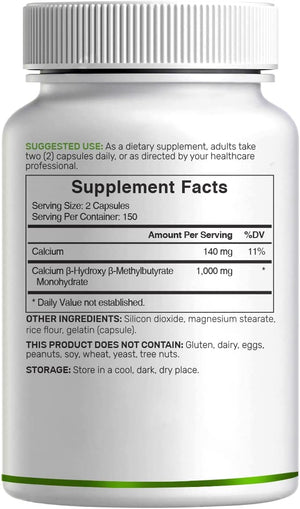 Pureza del 99 %: el suplemento Deal HMB de 1000 mg en cápsulas está hecho con más del 99 % de calcio puro en polvo de HMB.