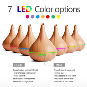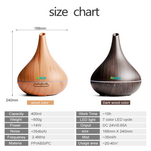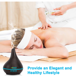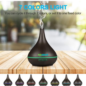 Aspecto elegante y elegante, 8 colores: el difusor de aceite esencial de aromaterapia está hecho de plástico con un aspecto de madera sintética, tanque de agua sin BPA, diseño fino y buena calidad, combina de forma natural con la mayoría de la decoración del hogar. Las luces de colores intercambiables aportan una vista elegante, crean un ambiente relajante a la habitación, y hacen que tu vida sea más colorida.