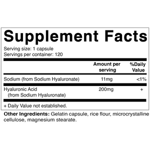 Ácido Hialurónico es una sustancia natural producida por el cuerpo humano. Que está presente en todos los tejidos del cuerpo, con la más alta concentración se producen en tejidos conectivos como el cartílago de la oreja y la piel. Ácido Hialurónico es conocido para albergar hasta 1000 veces su peso en agua. Por desgracia, la cantidad de ácido hialurónico en el cuerpo disminuye con la edad, dejando con nosotros con dolor articulaciones rígidas y una estructura de piel de dried-out que bajo la superficie está dañado y en la superficie, es visible como las líneas finas. Aumento de los niveles de ácido hialurónico natural en el cuerpo puede ayudar a proporcionar beneficios para las articulaciones, tela conectivo y la piel. * Una de las maneras más fáciles a cosechar los beneficios del ácido hialurónico es con suplementos de ácido hialurónico oral
