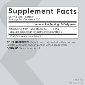 ASTAXANTINA ISLANDESA 6MG 120 CAPSULAS BLANDAS SIN GMO SPORTS RESEARCH