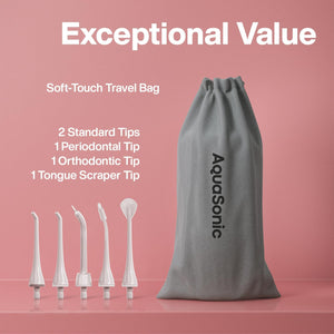 - Estimulación suave de las encías y limpieza de la lengua: además de limpiar entre dientes, Aqua Flosser ayuda a estimular las encías para promover la circulación e incluye una punta raspadora de lengua especializada para una boca más fresca y limpia.