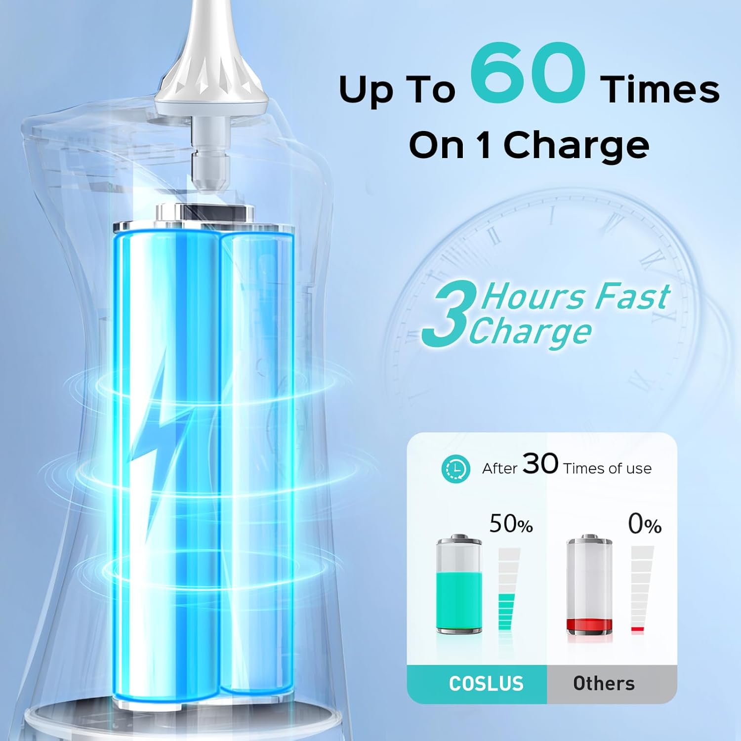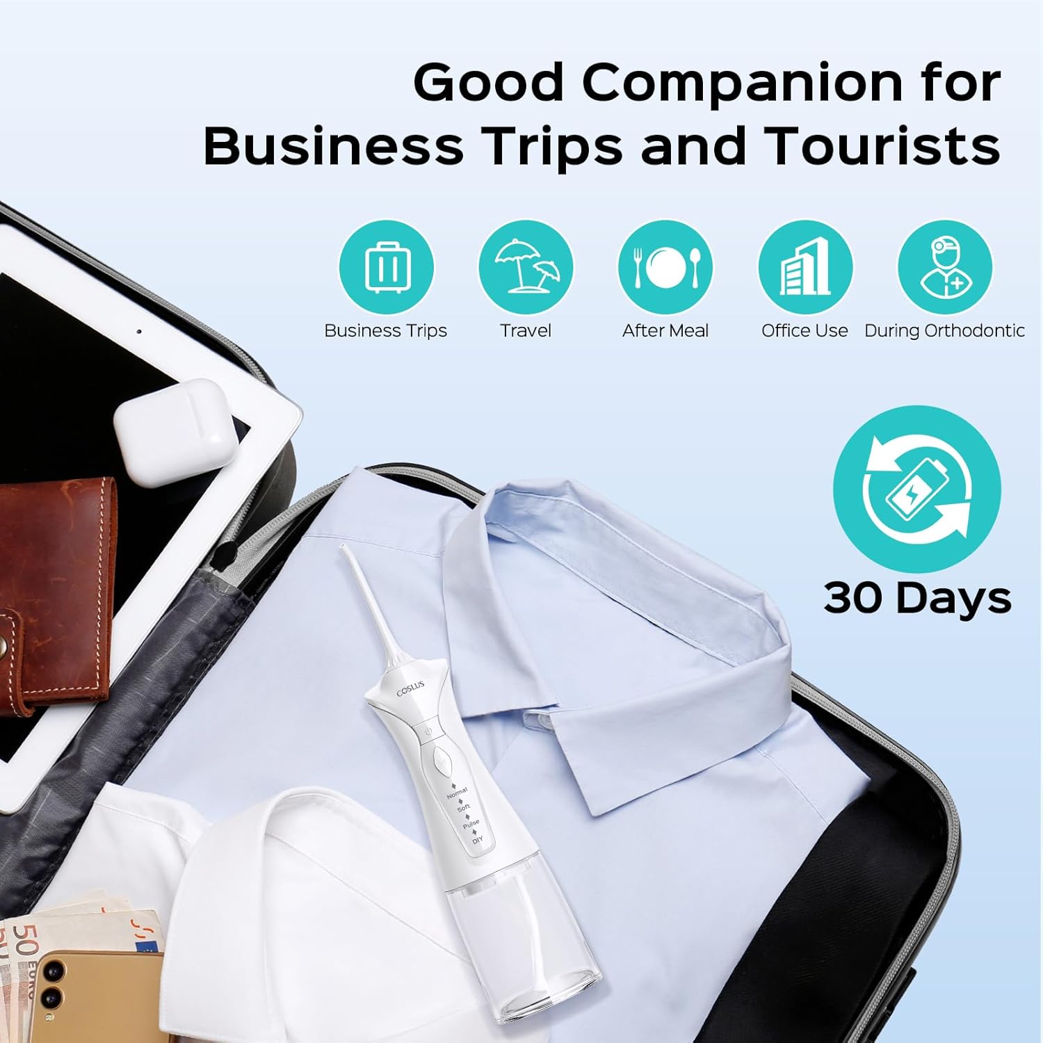 - Carga rápida de 3 horas, 60 usos de duración extendida de la batería para uso sobre la marcha: El hilo dental dental de agua de viaje portátil cuenta con una potente batería verde que es el doble de tiempo que otros modelos. Solo 3 horas de carga completa y dura 60 veces por viaje de carga. Su diseño ligero y compacto es fácil de guardar en la bolsa de trabajo, por lo que es fácil de usar en viajes, oficina y viajes de negocios cuidado bucal sin ninguna carga. También viene con un cable USB (adaptador no incluido) para una fácil carga