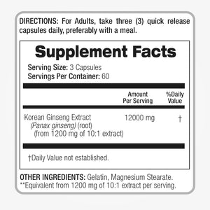 Fórmula de Alta Potencia: Con 12,000 mg de ginseng panax coreano por porción, esta fórmula proporciona una dosis efectiva para obtener todos los beneficios del ginseng.