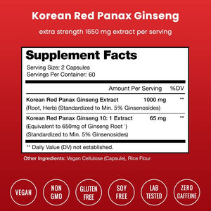 GINSENG COREANO ROJO 1650 MG 120 CAPSULAS VEGANO SIN GMO NUTRA CHAMPS