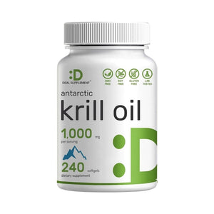 - Súper fuerza: el gel suave de aceite de krill de Deal Supplement se obtiene de forma sostenible de las mejores aguas del océano Antártico, que ofrece 1000 mg de aceite de krill de alta potencia, 240 mg de fosfolípidos, 250 mg de ácidos grasos Omega-3 (DHA&EPA) y 200 mcg de astaxantina por porción.