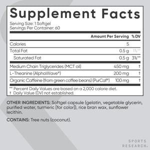 L TEANINA CON CAFEINA 750 MG 60 CAPSULAS BLANDAS SPORTS RESEARCH