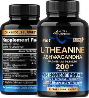 L THEANINE CON ASHWAGANDHA 200 MG NUTRA HARMONY 120 CAPSULAS VEGETALES NO GMO