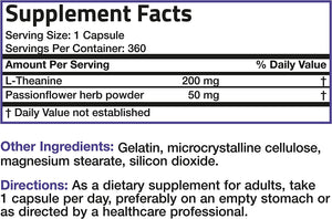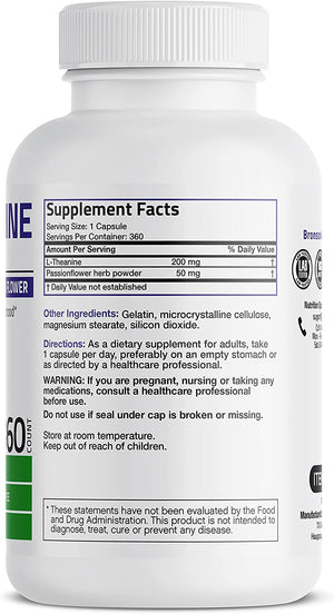 TEANINA 200 MG + POLVO DE HIERBAS DE PASIORES 50 MG 360 CAPSULAS SIN GMO BRONSON