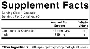 LACTOBACILO SALIVAR 2 BILLONES CFU 60 CAPSULAS NO GMO VITAMATIC LACTOBACILLUS SALIVARIUS