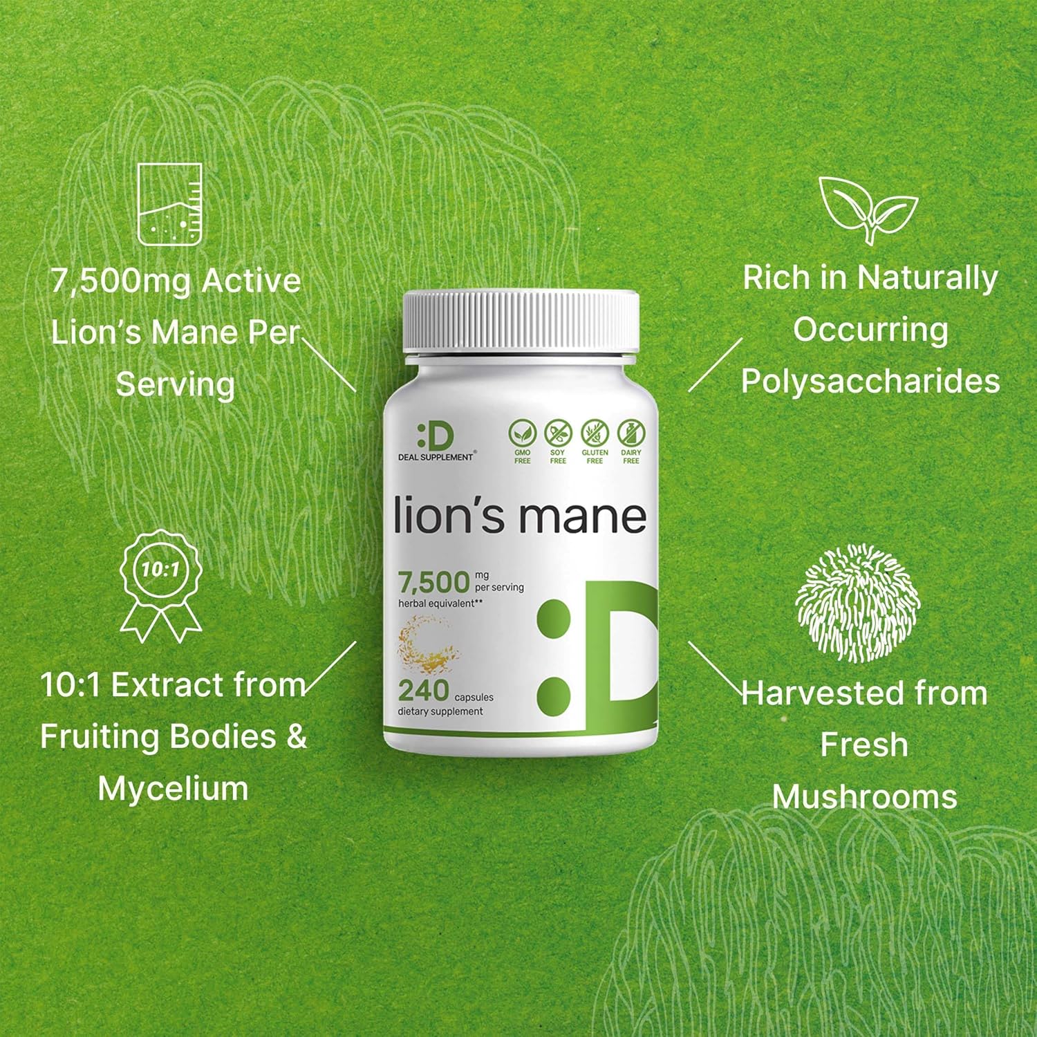 HONGO MELENA DE LEON 7,500 MG 240 CAPSULAS DEAL