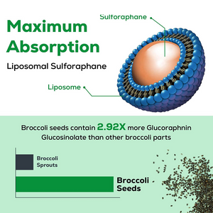 Nuestro suplemento de sulforafano contiene 150 mg de sulforafano + 300 mg de glucorafanina de extracto de semilla de brócoli. El sulforafano en verduras cruciferas se produce en una forma almacenada e inactiva como glucorafanina. La glucorafanina (Precursor de sulforafane) se convierte en forma activa de sulforafano por la enzima mirosinasa. La potente combinación mejora drásticamente la potencia y hace un efecto duradero.