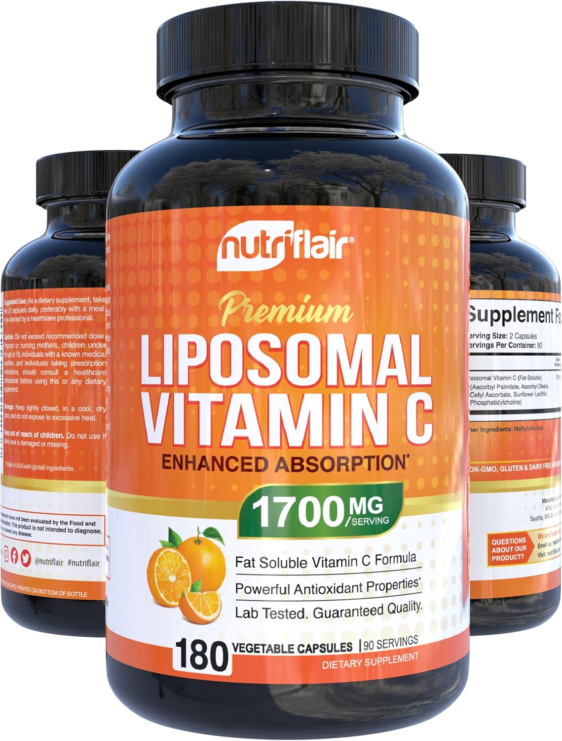 VITAMINA C LIPOSOMAL 1,700 MG 180 CAPSULAS VEGETALES SIN GMO NUTRIFLAIR