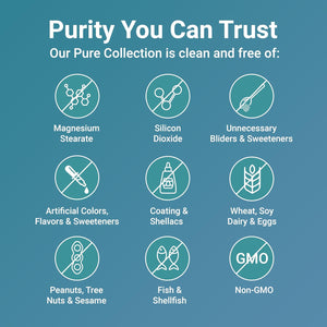 Suplemento premium sin OMG. Fabricado sin soja, lácteos, gluten, trigo, cacahuetes y nueces de árbol. Los ingredientes deben pasar nuestras pruebas de laboratorio de terceros para garantizar que sean seguros, puros y potentes.