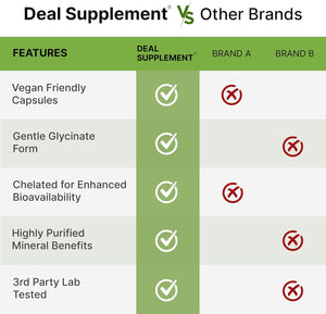 Alta Biodisponibilidad: El magnesio glicinato es altamente absorbido por el cuerpo, lo que garantiza una mejor utilización y eficacia en comparación con otras formas de magnesio.