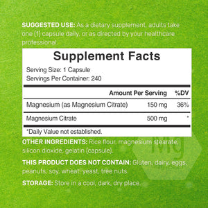 CITRATO DE MAGNESIO DEAL 500 MG 240 CASPULAS SIN GMO