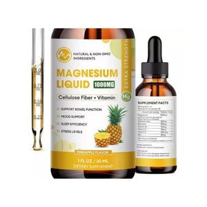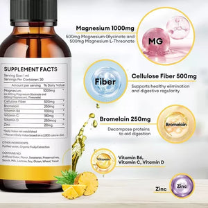 Suplemento de gotas líquidas de magnesio – Formulado con 1000 mg de glicinato de magnesio y elemento de magnesio, que experimentan una mayor resistencia al estrés, un estado de ánimo tranquilo y un mejor sueño. Mejorado con fibra de celulosa de 500 mg, bromelina, vitaminas B, C, D y zinc, apoya la salud cerebral, la formación de huesos y la energía, también te ayuda a digerir bien los alimentos y cuida tu corazón.