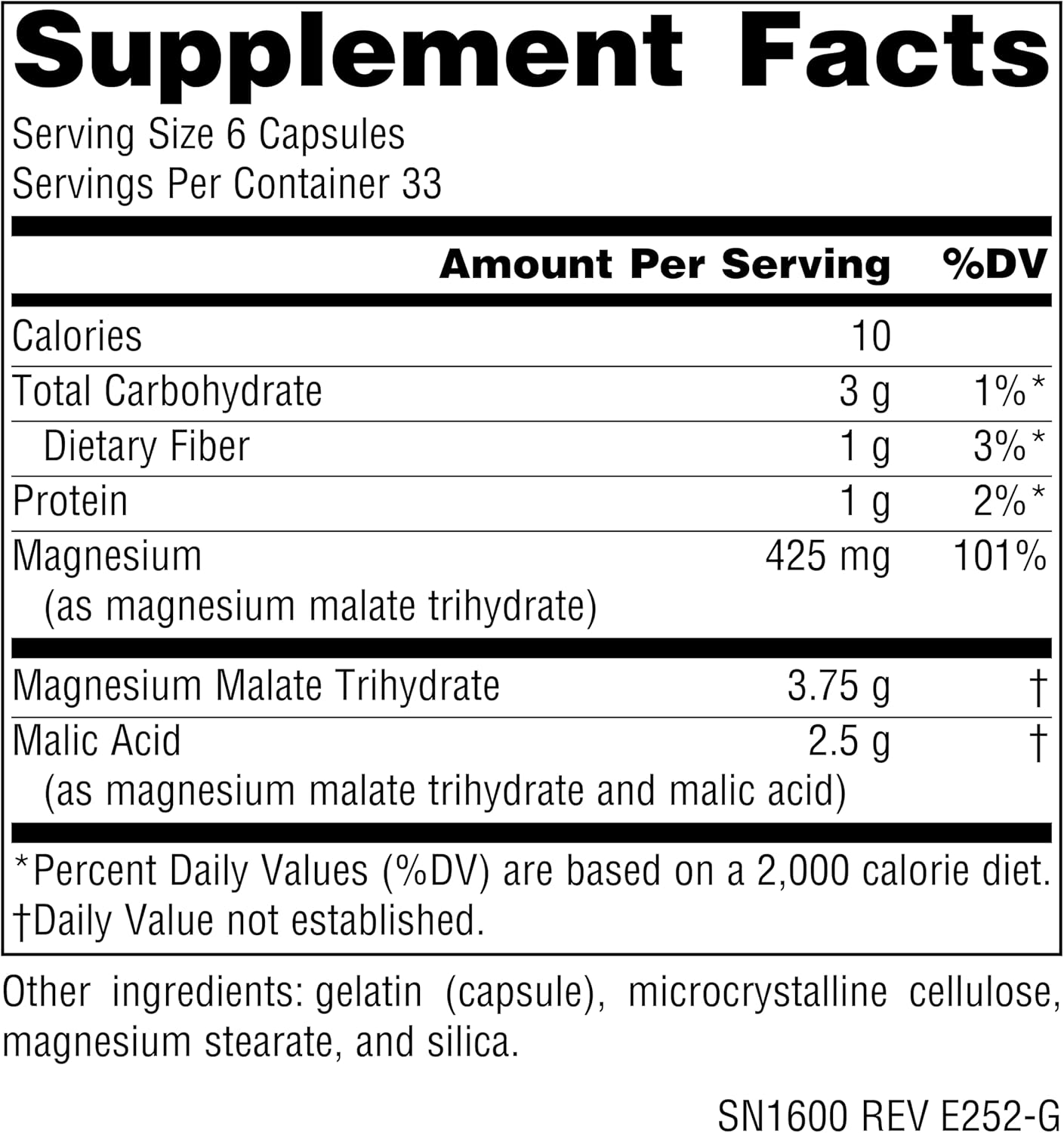 MALATO DE MAGNESIO 3750 MG 200 CAPSULAS SIN GMO SOURSE NATURALS