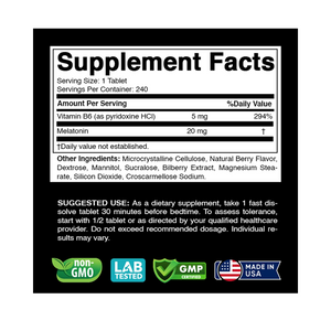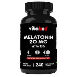 MELATONINA 20 MG CON VITAMINA B6 5 MG 240 TABLETAS SUBLINGUALES SIN GMO VITABOD
