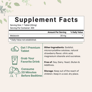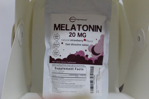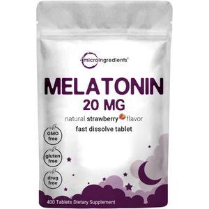 Micro Ingredients ofrece tabletas de melatonina sublinguales y masticables de potencia máxima de 20 mg Proporciona melatonina natural sin OMG para adultos que vienen en tabletas de disolución rápida y ofrece un sabor relajante a fresa.