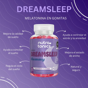 Dile adiós al insomnio y mejora tu descanso con nuestras DREAMSLEEP, gomitas con 5mg de Melatonina por porción, diseñadas para ayudarte a conciliar el sueño más rápido y disfrutar de un descanso continuo y reparador. Con un delicioso sabor a berries, son la forma natural y libre de químicos de mejorar tu calidad de sueño.