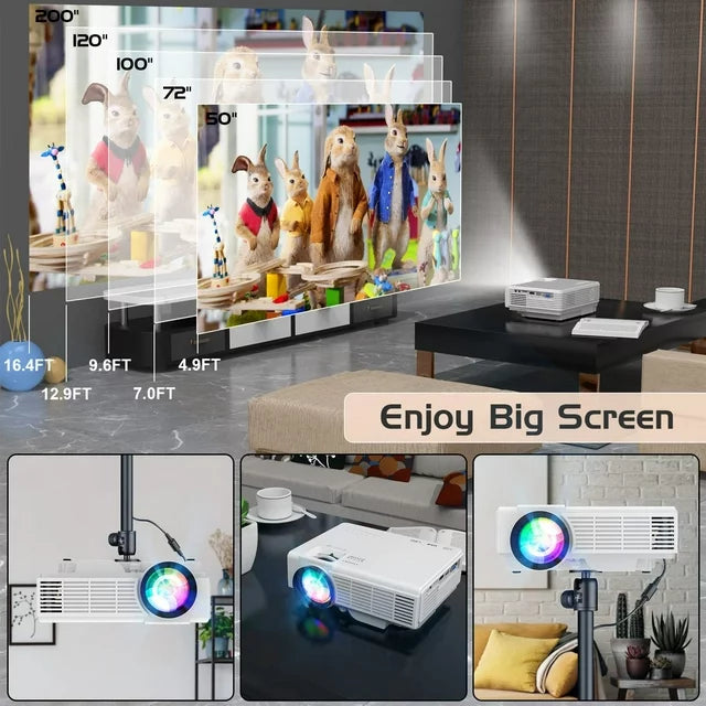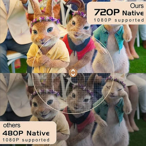 Espectáculo claro y maravilloso. Lente LCD incorporada de 4 pulgadas, con el tamaño de proyección máximo de 170 '', resolución nativa de 1280x720, resolución compatible con MAX de 1920x1080 y relación de contraste de 5000: 1, se logrará una pantalla más clara. 4: 3/16: 9 Aspect Ratio también proporciona un gran campo visual. Además, también puede ajustar la claridad a través de la piedra angular y el enfoque.