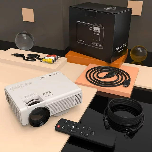 Compatible con la mayoría de los dispositivos. Este proyector portátil presenta una entrada HDMI para la memoria USB, la última generación de consolas de videojuegos, PC, computadoras portátiles, televisores, DVD, etc. También tiene entrada VGA y entrada USB / Micro SD / AV, así como una salida de mini jack de 3.5 mm.