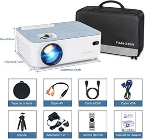 MINI PROYECTOR PORTATIL MULTIMEDIA FANGOR F-206A CON BLUETOOTH 6000 LUMENES 170 PULGADAS PARA CINE EN CASA, KARAOKE, OFICINA