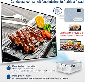 Equipado con interfaces USB, tarjeta TF, HDMI, VGA y AV, puede ser compatible con Chromecast, PC, computadoras portátiles, tarjetas SD, USB, etc. Ideal para disfrutar de películas, juegos, patio trasero Noche de barbacoa, fiesta de cumpleaños, etc. (Tenga en cuenta que para la conexión de un teléfono inteligente, necesitará un adaptador de iluminación a HDMI o un adaptador de USB / Tipo C a HDMI).