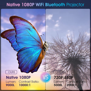 - Con 9000L, 10000:1 de alto contraste y relación de aspecto 16:9/4:3, el proyector Bluetooth DBPOWER L23 proporciona imágenes nítidas y detalladas para entretenimiento. El proyector DBPOWER L23 nativo 1080P HD soporta video 1080P, lo que te ofrece una imagen nítida