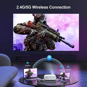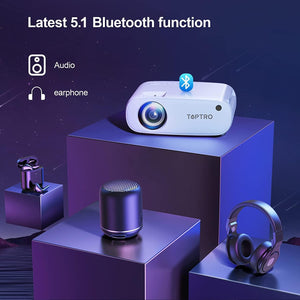 - Bluetooth 5.1 y altavoces duales HiFi integrados: este proyector Bluetooth puede conectar tus altavoces o auriculares para mejorar tus necesidades de calidad de sonido, el chip Bluetooth 5.1 2023 recientemente actualizado hace que la sincronización de audio sea más rápida y estable, y mejora tu inmersión en la escena de la película.