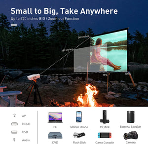 - Conectividad versátil: este proyector HD viene con 2 puertos HDMI, 2 puertos USB, AV y audio, lo que te permite conectarte sin esfuerzo a una TV Box, TV Stick, teléfono iOS y Android, laptop, PS5, auriculares y mucho más.