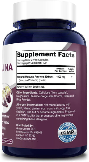 MUCUNA PRURIENS NUSAPURE 1000 MG 200 CAPSULAS VEGETALES SIN GMO