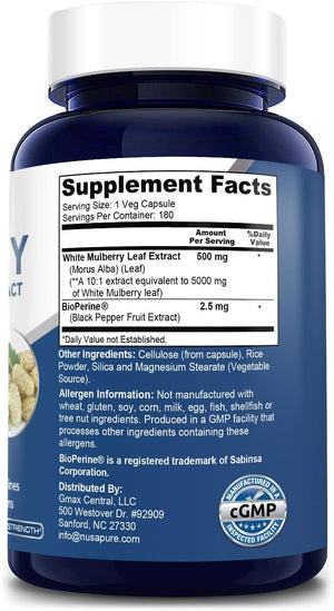 Cada porción ofrece la equivalencia de 5,000 mg de hoja de morera blanca por porción. Extracto 10:1. Contiene 180 cápsulas vegetales para un suministro de 180 días. Vegano/vegetariano, sin OMG, sin gluten. Fabricado en los Estados Unidos en una instalación registrada por cGMP con altos estándares. Suplemento de morera blanca avanzado y superior que utiliza abastecimiento e innovación de alta calidad