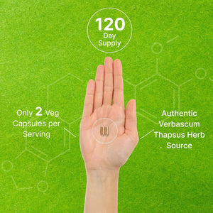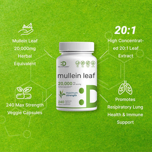 Fórmula de Alta Potencia: Con 20000 mg de hoja de mullein por porción, esta fórmula ofrece una dosis efectiva para maximizar los beneficios para la salud respiratoria.