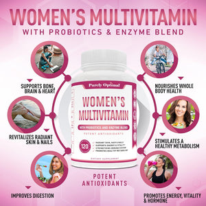 MULTIVITAMINAS PARA MUJERES CON PROBIÓTICOS Y ENZIMAS 4,059 MCG 120 CÁPSULAS NO GMO PURELY OPTIMAL