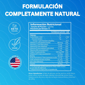 Presentación: 90 gummies sabor frutas.