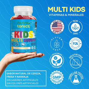 MULTIVITAMINICO PARA NIÑOS KIDS 90 GOMITAS NUTRATONICS CON 11 VITAMINAS Y MINERALES VEGETARIANO, NO GMO, SIN GLUTEN