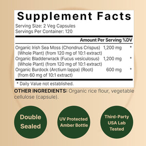 MUSGO DE MAR 3 EN 1 3000 MG 240 CAPSULAS SIN GMO NATUREBELL SEA MOSS IRISH