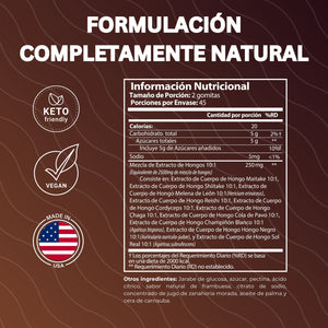 10 hongos adaptógenos en una sola fórmula: Lion’s Mane, Reishi, Cordyceps y más.
